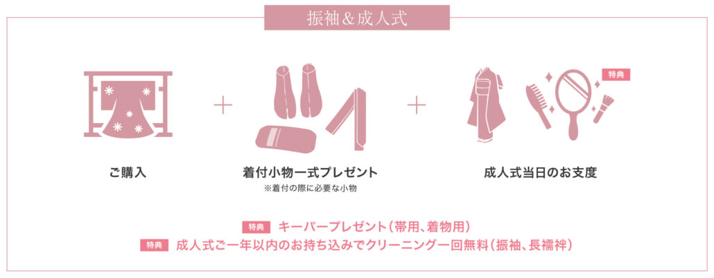 ※成人式当日のお支度特典は15万円以上のご成約の方に限ります。(15万円未満の場合ご優待料金にてご案内いたします。)